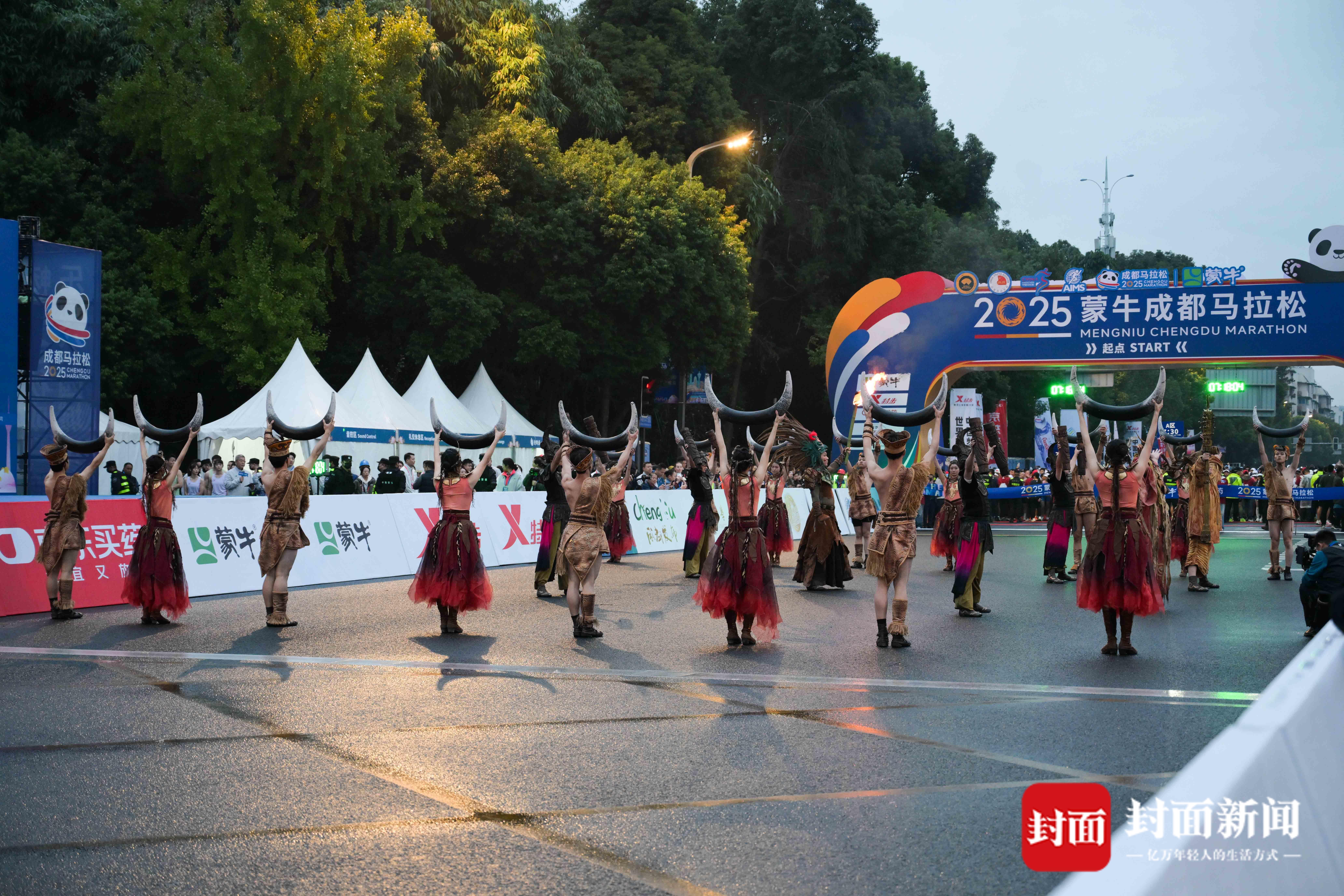 2025成都马拉松起跑前的金沙古蜀文化展演